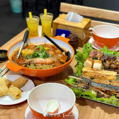 ဒီဆိုင်လေးကိုတော့ တော်တော်များများသတိထားမိကြမယ်ထင်တယ် ၊ သူကတစ်ဆိုင်လုံးကိုမှ လိမ္မော်ရောင် Vibe လေးနဲ့ ဆိုင်လေးကလဲ ချစ်စရာလေးဗျ ၊ သူကဆိုင်မှာအဓိကထားရောင်းတာကတော့ အကင်နဲ့ မောက်ချိုက်ပေါ့နော် ၊ မာလာရှမ်းကောတော့မရသေးဘူးဗျ ၊