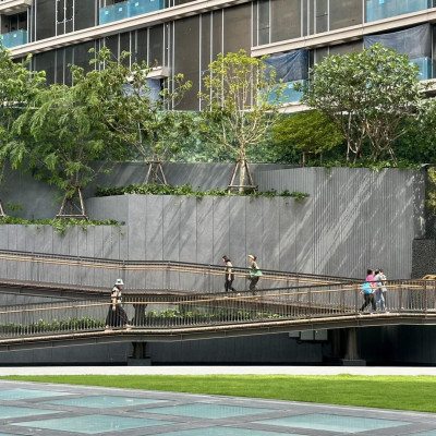 ပန်းခြံထဲမှာ လမ်းလျှောက်ပြီး ရှုခင်းတွေကြည့်လို့ရတယ်။ ပန်းခြံက တိုက်အမြင့်ပေါ်မှာဆိုတော့ မျက်နှာချင်းဆိုင်က Lumpini ပန်းခြံနဲ့ ဘန်ကောက်မြို့ ရှုခင်း နှစ်ခုစလုံးကို အရင်က မမြင်ဖူးတဲ့ ပုံစံနဲ့ အပေါ်စီးကနေ ကြည့်လို့ ရတယ်။​
