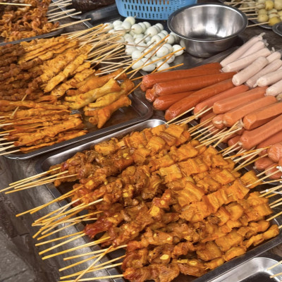 သူက မုန့်လက်သုပ်ဆိုင်ရှေ့နားလေးတင်ပဲ။ အကင်ကတော့ ဘာစုံသလဲမမေးနဲ့။ sausage တွေဆို ဆိုဒ်စုံ၊ အသားလုံး၊ အသားပြားနဲ့ ကြက်မဲတွေကို စပိုင်စီဆော့စ်လေးနယ်ပြီး စပ်စပ်လေးသုပ်ပေးထားတော့ ရှူးရှူးရှဲရှဲပဲ..🥵